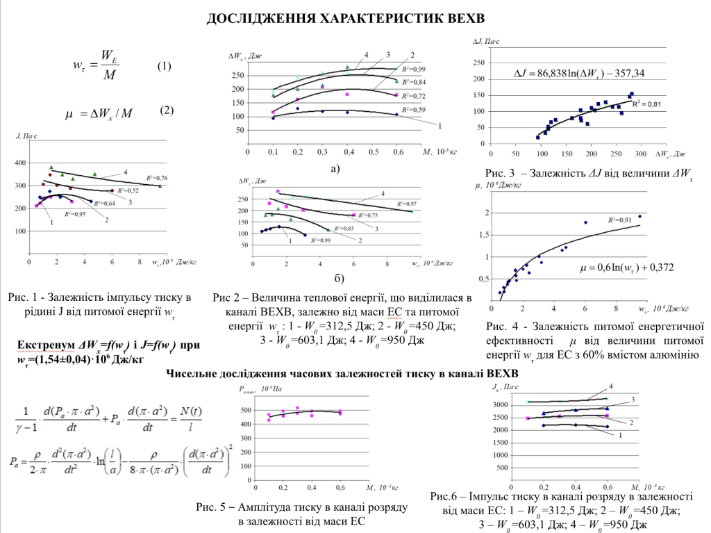 2. Встановлено оптимальне значення питомої електричної енергії при реалізації ВЕХВ, що забезпечує максимум виділеної хімічної енергії й максимум імпульсу тиску, використання якого при розробці енергоджерел для РІТ на основі ВЕХВ дозволяє мінімізувати затрати електричної енергії.
