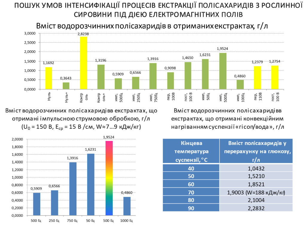 НДР IV-44-20 «Пошук умов інтенсифікації процесів екстракції полісахаридів з рослинної сировини під дією електромагнітних полів»